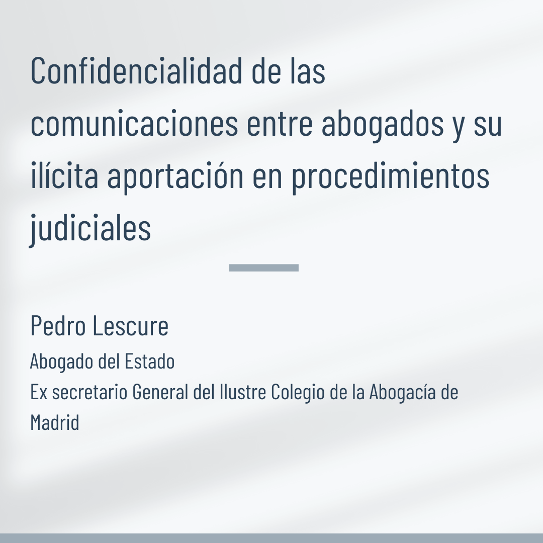 “Dentro del secreto profesional que rige el ejercicio de la abogacía, cobra especial trascendencia la confidencialidad de las comunicaciones cruzadas entre los profesionales de la Abogacía que tienen por objeto lograr un acuerdo que evite el inicio de un procedimiento judicial o que, en su caso, ponga fin al procedimiento ya entablado.” — Pedro Lescure.