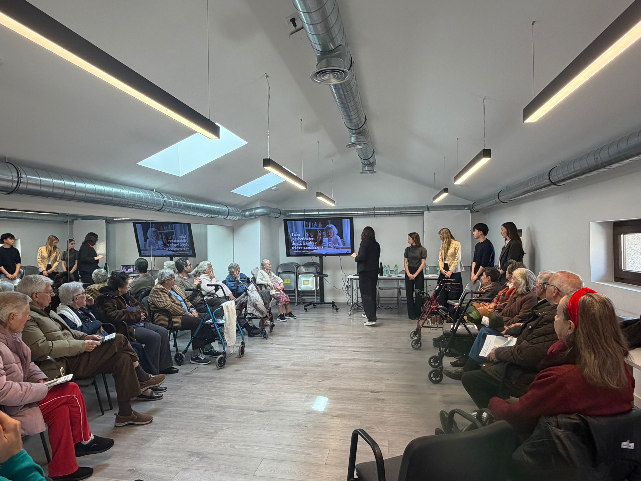 En esta ocasión contamos con la participación de los alumnos de la Clínica Jurídica de ICADE que, bajo la coordinación de Patricia Fita, responsable de proyectos de la Fundación Fernando Pombo, se encargaron de explicar de forma práctica y accesible diversas cuestiones jurídicas de gran relevancia para la vida cotidiana. Durante la sesión se abordaron temas como la igualdad y la no discriminación, la alfabetización digital, el uso de herramientas digitales en el sector bancario, así como los trámites electrónicos con la Administración Pública. También se trataron cuestiones de especial actualidad como la ciberdelincuencia, las estafas y el fraude telemático, las comunicaciones comerciales y la gestión del consentimiento, además de la asistencia jurídica gratuita y el turno de oficio.